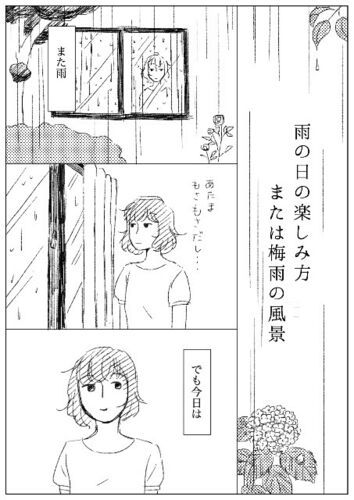 今週のお題「梅雨の風景」 先々週だったかな? 「雨の日の楽しみ方」というお題だった時に、 それに合わせて描いたマンガです。 例によって間に合わなかったんですが、 うまい具合に今週のお題でもいけそうだったので、 て言うかいけるって思い込む事にして…